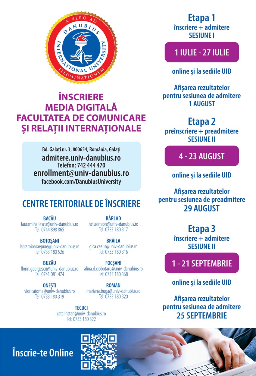 Universitatea Internațională Danubius organizează prin Centrul de Formare Continuă și Informare Tehnologică, cursuri de limbi străine. Puteți opta pentru cursurile de nivel începător, de limba engleză, italiană sau germană.